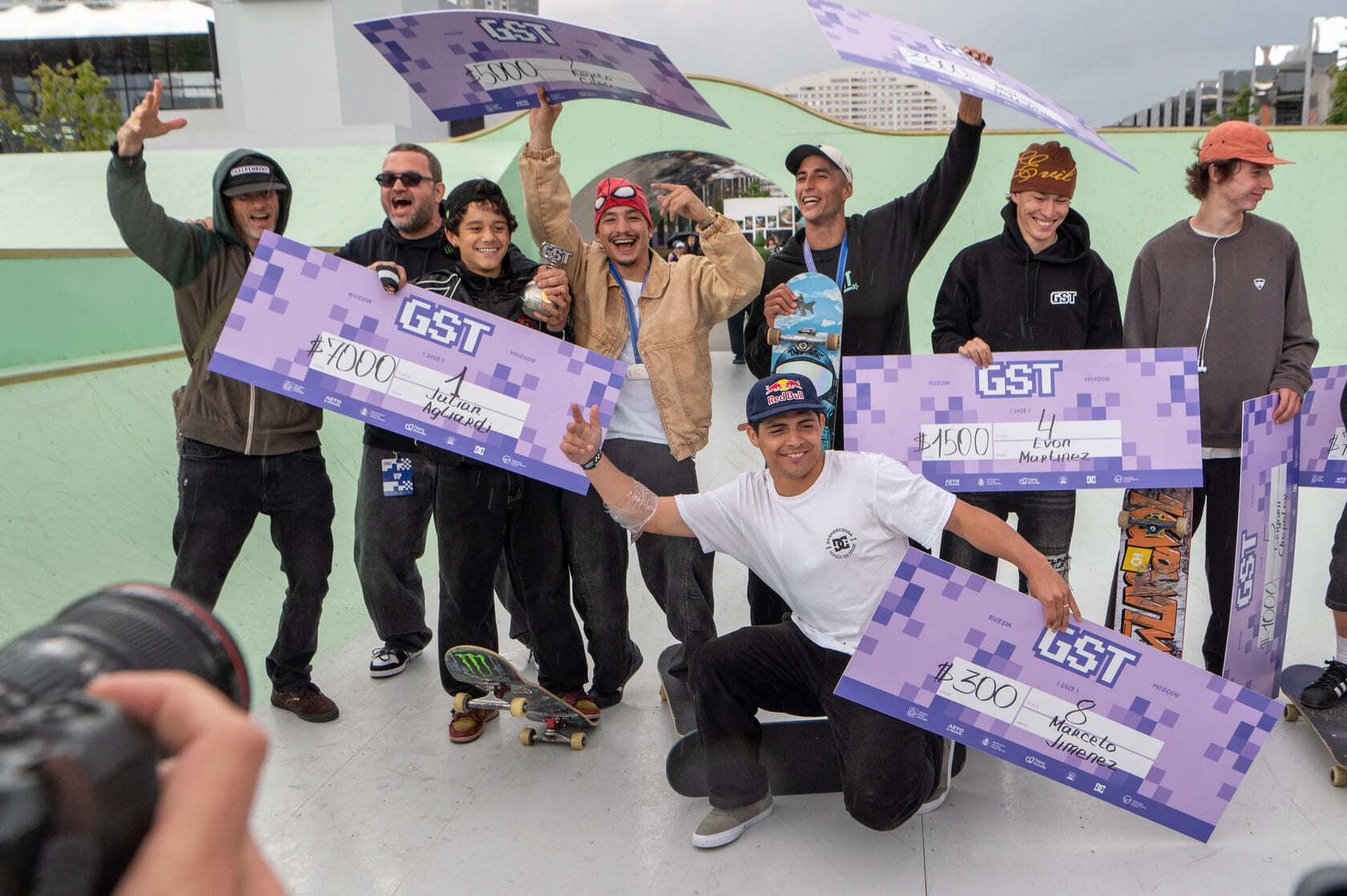 Третье место в этом году — за двукратным чемпионом GST аргентинцем Матиасом Дело Олио, в очередной раз поразившим всех своим умением делать из скейтбординга шоу; серебро взял человек-паук из Перу, выполнивший свои коронные трюки на всех перилах скейтпарка — Анжело Каро, а победитель Grand Skate Tour 2025 — 15-летний представитель Франции Джулиан Аглиарди, получивший оценки в 90 баллов как в секции попыток по 45 секунд, так и в секции бест-триков.
